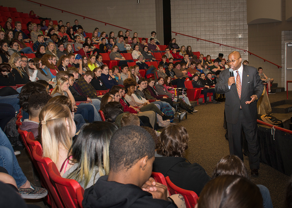 He talked about how he became a trauma surgeon, and encouraged students to be persistent, work towards their goals and do what they can to go to college.