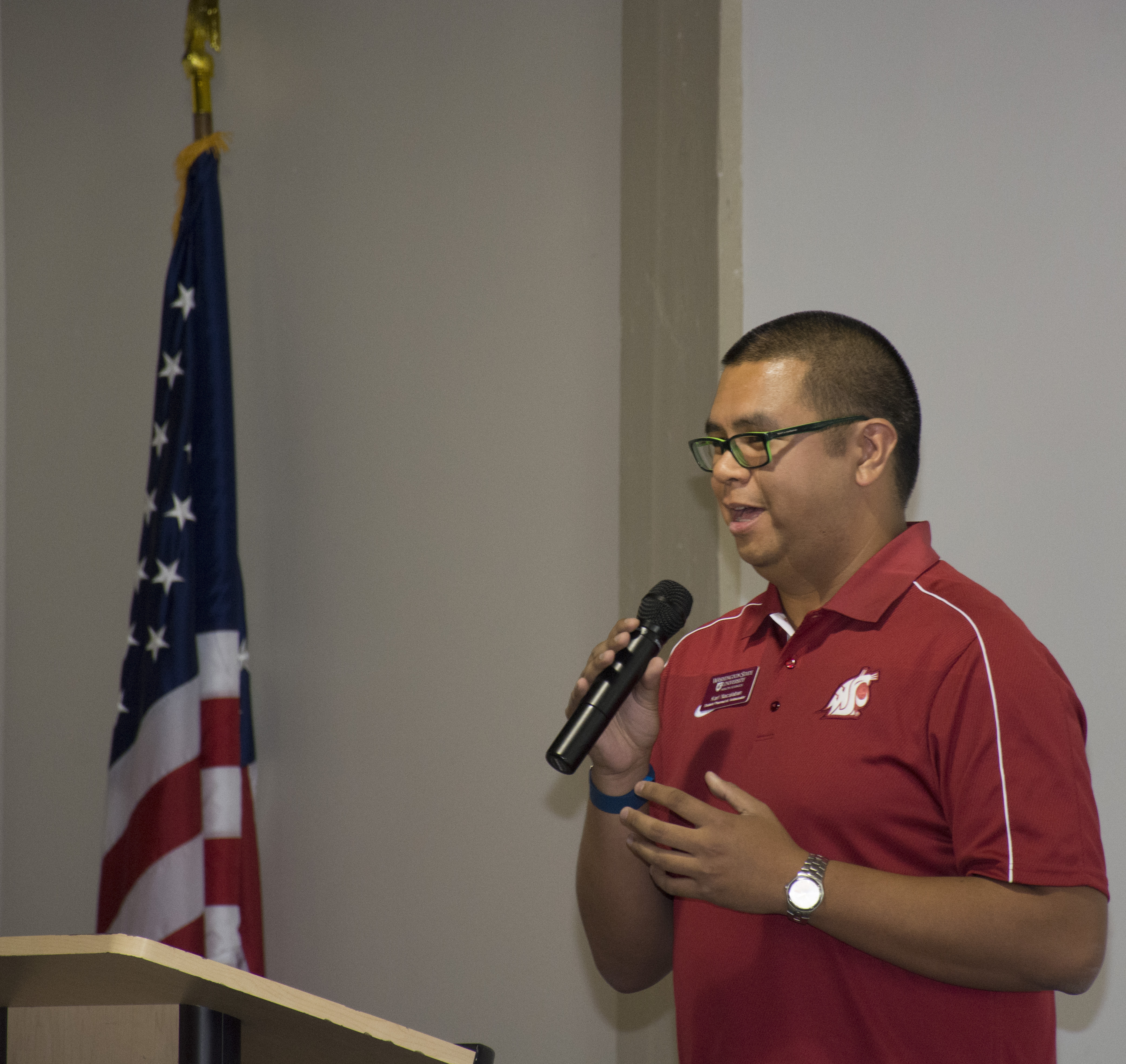 An expo of sorts kicked off the event, with displays from each program on campus set up for the students to tour and talk directly to current students in each health science program. The students also heard from Student Body Vice President Karl Nacalaban (pictured below) as he shared the unique culture on the WSU Spokane campus and what it is like being a student here.